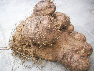 Recently while gardening, my mom spotted something.... A plant which she was sure had a huge tuber inside that could be used as a vegetable for cooking, and ofcourse she was correct.