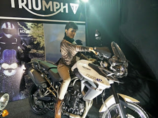 Tiger XRx is a 800cc weighing around 200kg. This too has a 6 speed gear box. The tank capacity here is only 19lt. In this model, the speedometer, rpm etc are in a LCD display panel. This machine has 3 options for riding - Road, Off road, and a customized one Rider. The maximum power utilized changes in accordance to the riding mode. Quite unusually, for a super bike, this has a centre stand!