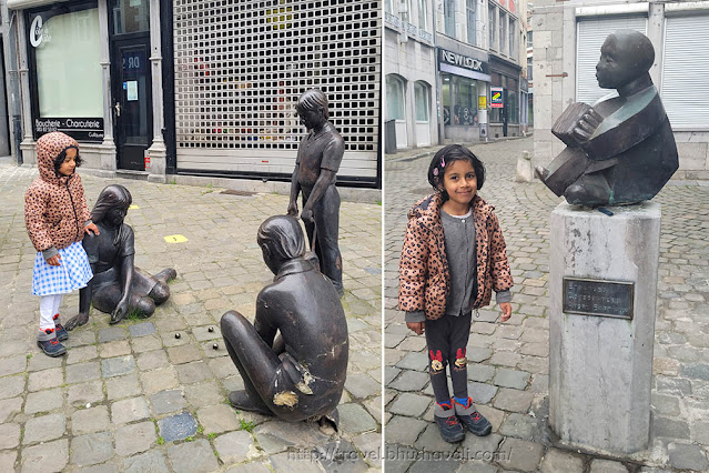 Huy and Andenne have lot of exciting things to do. The fortress of Huy is an iconic spot to visit with an interesting history linked to world war II. The rose window of the Collegiate church of our lady is beautiful and the statue of the kids playing with marbles.The statue of the Neanderthal girl at Space Museal D'Andenne Scladina is so intriguing and real. I'm sure Atyudarini enjoyed the Ben Ahin petit park marmosets and ponies.